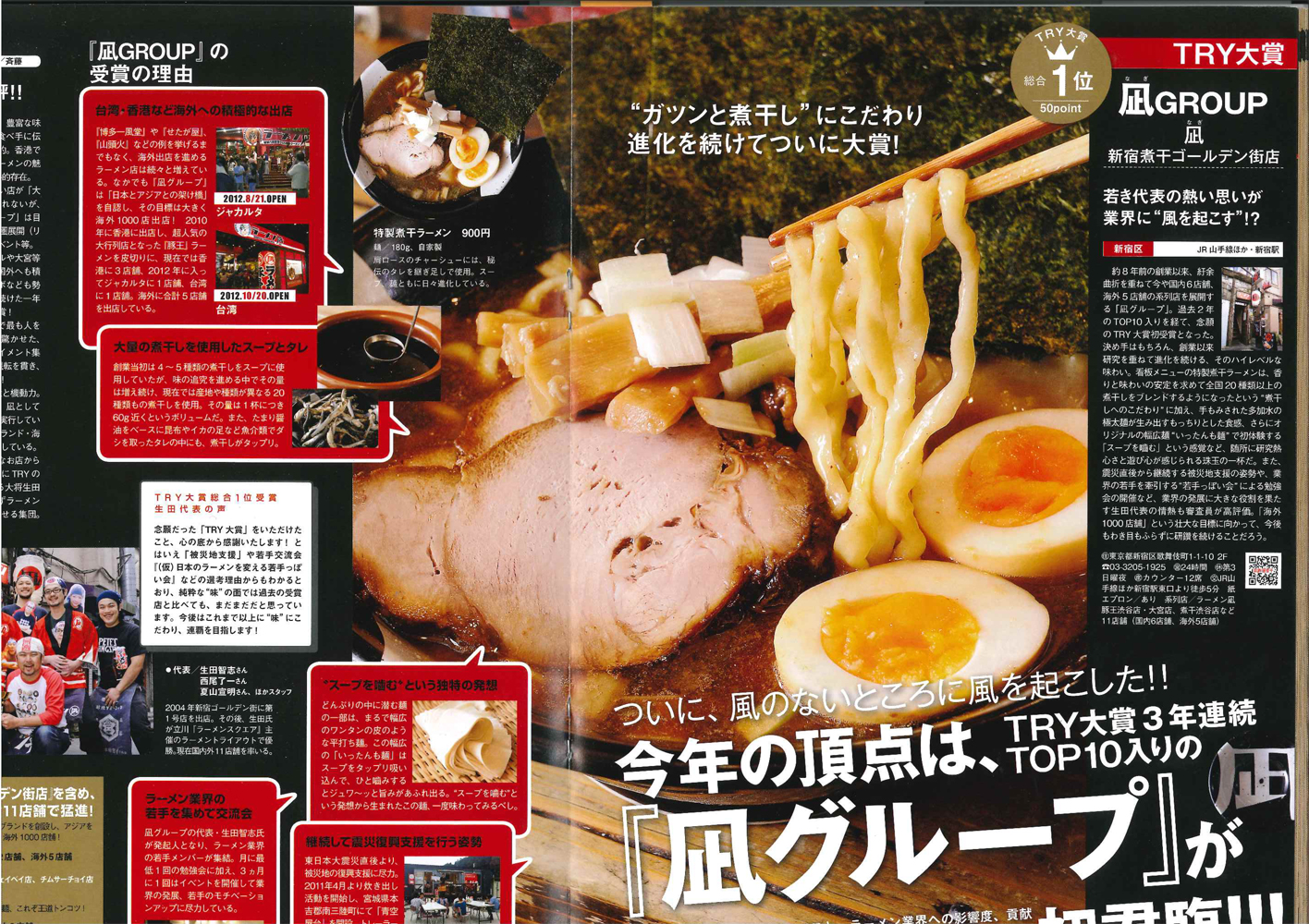 業界最高権威 TRY認定「第13回 ラーメン大賞2012-13」を受賞しました。